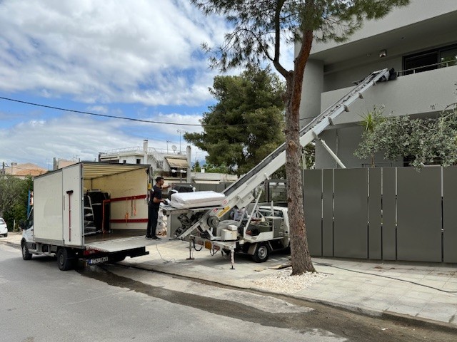 Χρησιμοποιούμε σύγχρονα ανυψωτικά μηχανήματα και γερανούς μετακόμισης για την εύκολη και ασφαλή μεταφορά αντικειμένων από και προς υψηλούς ορόφους. Με αυτόν τον τρόπο αποφεύγονται ζημιές σε κοινόχρηστους χώρους και μειώνεται σημαντικά ο χρόνος της μετακόμισης.
